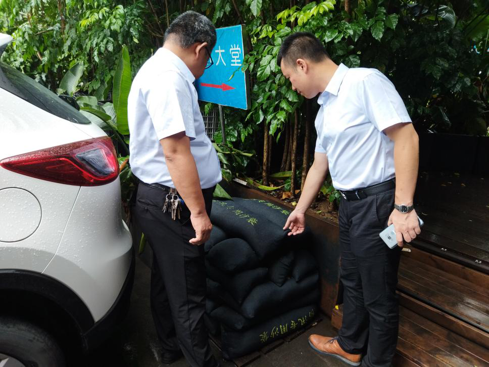 閩越公司組織在建項目和出租房產(chǎn)隱患排查,對頂樓水塔、地下室防積水和排水系統(tǒng)等進行檢查,要求施工方暫停施工,備好防澇物資和安排值守人員,通知負層租戶做好防澇準備工作。