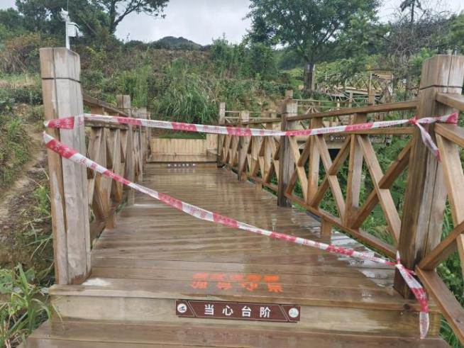 瑯?gòu)止窘M織佛子山景區(qū)游步道項目、外屯游客服務(wù)中心防臺防汛安全排查,加強對高陡邊坡等重點部位巡查、拉好警戒線等。